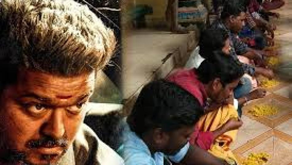 நடிகா் விஜய் நடிப்பில் பிகில் வெளியாக உள்ள நாளில் பட்டாசு வெடிக்க பரபரப்புடன் காத்திருக்கும் ரசிகர்கள் பட்டாளம் ஒருபுறமிருக்க மற்றொரு புறம் படம் வெற்றி அடைவேண்டும் என்பதற்காக அவரது ரசிகா்கள் கோயிலில் மண் சோறு சாப்பிட்டு வழிபாடு நடத்தினா்.