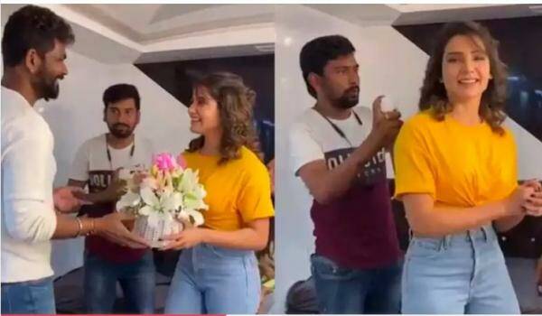 படப்பிடிப்பில் பங்கேற்க மேக் அப் அணிந்து தயாராகிக் கொண்டிருந்த சமந்தாவுக்கு விக்னேஷ் சிவன் பூங்கொத்து கொடுத்து படப்பிடிப்புக்கு வரவேற்றார். அவரிடம், 'ஷூட்டிங் சீக்கிரம் முடிச்சி டுவீங்கிலா என்று சமந்தா கேட்க, தெரியலே நீங்க வாங்க பாப்போம். 10 நிமிஷத்தில் ரெடியாகிவிட்டு வாங்க அதற்குள் எல்லா ஏற்பாடும் செய்து வைக்கிறேன் என்று விக்னேஷ் சிவன் கூறினார். இந்த காட்சி வீடியோவாக வெளியாகி இருக்கிறது. அதில் சமந்தா, காத்து வாக்குல ரெண்டு காதல் இன்றைக்கு ஷூட்டிங் ஆரம்பம் என்கிறார். இப்படத்தில் நயன்தாராவும் நடிக்கிறார். அவர் தற்போது அண்ணாத்த படப்பிடிப்புக்காக ஐதராபாத் சென்றிருக்கிறார். ராமோஜிராவ் ஸ்டுடியோவில் நடக்கும் ஷூட்டிங்கில் ரஜினியுடன் கலந்துகொண்டு நடித்து வருகிறார். அதன் படப்பிடிப்பை முடித்த பிறகு நயன்தாரா காத்து வாக்குல ரெண்டு காதல் படத்தில் பங்கேற்க உள்ளார்.இப்படத்தையடுத்து நயன்தாரா நெற்றிக்கண் படப்பிடிப்பில் பங்கேற்பார் என்று தெரிகிறது.