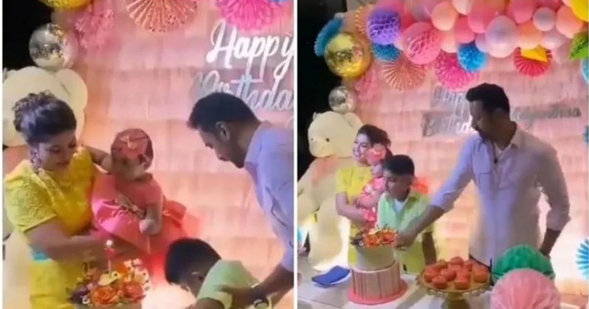 2வது குழந்தையை வயிற்றில் சுமந்த நிலையில் தனுஷ் நடித்த பட்டாஸ் படத்தில் ஆக்ஷன் வேட்டத்தை ஏற்றார் சினேகா. அடிமுறை என்ற பழம் தமிழர் கலையான சண்டை பயிற்சியைப் பெற்றவர் படத்திலும் ஆக்ஷன் காட்சியில் நடித்தார். எந்த பாதகமும் இல்லாமல் கடந்த ஆண்டு ஜனவரி மாதம் அதியந்தா குழந்தையைப் பெற்றெடுத்தார். குழந்தை பிறந்து ஒரு வருடம் ஆனதையடுத்து குழந்தையின் முதல் பிறந்தநாளைச் சினேகா நேற்று கொண்டாடினார். அலங்கரிக்கப்பட்ட அறையில் பெரிய கேக் வாங்கி வைத்து குழந்தை கேக் வெட்ட வைத்து மகிழ்ந்தார். இதில் சினேகாவின் குடும்பத்தினர் கலந்துகொண்டனர். விழாவில் கலந்து கொண்ட சினேகாவின் சகோதரி சினேகாவை இறுக்கமாக கட்டிப்பிடித்து அவர் கன்னத்தில் நச்சென அழுத்தமாக முத்தம் பகிர்ந்தார்.