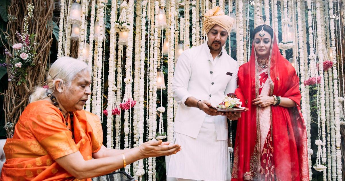 தெலங்கானாவைச் சேர்ந்தவர் தியா மிர்ஸா. மாடலிங் துறையிலிருந்து சினிமாவில் நடிக்க வந்தார். தமிழில், என் சுவாசக் காற்றே படத்தில் நடித்தார். பிறகு இந்தி படங்களில் நடித்து வந்தார். கேஷ், ஒம் சாந்தி ஒம், கிஸ்ஸன் உள்ளிட்ட பல இந்தி படங்கள் மற்றும் வெப் சீரீஸ்களில் நடித்திருக்கிறார். டிவி ஷோவிலும் பங்கேற்றிருக்கிறார்.தியா மிர்சா காதலன் வைபவ் ரேகியை சமீபத்தில் மணந்தார். இதில் நெருங்கிய நண்பர்கள் மற்றும் குடும்ப உறுப்பினர் கள் மட்டும் கலந்து கொண்ட ஒரு நெருக்கமான விழாவாக நடந்தது. வழக்கமாகத் திருமண விழாக்களை ஆண் புரோகிதர் கள் நடத்துவது வழக்கம்.