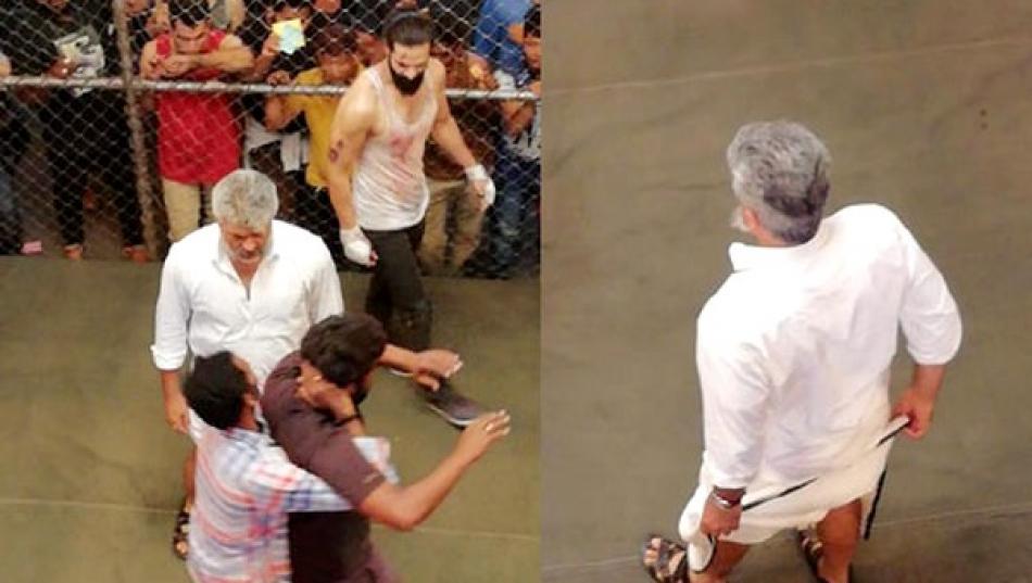 வெளியான புகைப்படங்களில், வெளிநாட்டில் நடக்கும் சட்டத்துக்கு விரோதமான பாக்ஸிங் ரிங்கினுள், அஜித் வேட்டியை வரிந்து கட்டிக் கொண்டு உள்ளே நுழைகிறார். மாஸ் சண்டைக் காட்சியான இதிலும் அஜித் சால்ட் & பெப்பர் லுக்கிலேயே காட்சியளிக்கிறார்.