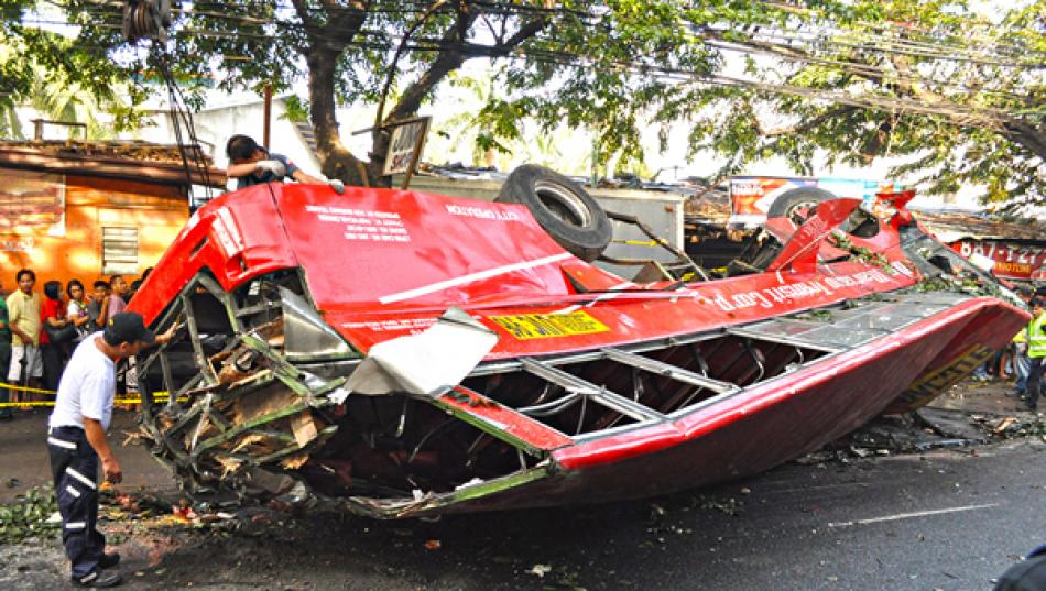 உலகம் முழுவதும் இன்று கிறிஸ்துமஸ் கொண்டாடப்படுகிறது. கிறிஸ்துமஸ் திருநாளை முன்னிட்டு, பிலிப்பைன்ஸ் நாட்டின் தெற்கு பகுதியில் உள்ள ஆகோ நகரை சேர்ந்தவர்கள் மனோவோக் நரில் உள்ள தேவாலயத்தில் நடைபெறுள் சிறிஸ்துமஸ் சிறப்பு பிராத்தனையில் கலந்து கொள்வதற்காக சிறிய பேருந்தில் புறப்பட்டுச் சென்றனர். அப்போது, செல்லும் வழியில் ஏதிரே வந்த மற்றொரு பேருந்து மீது மோதி விபத்துக்குள்ளானது.