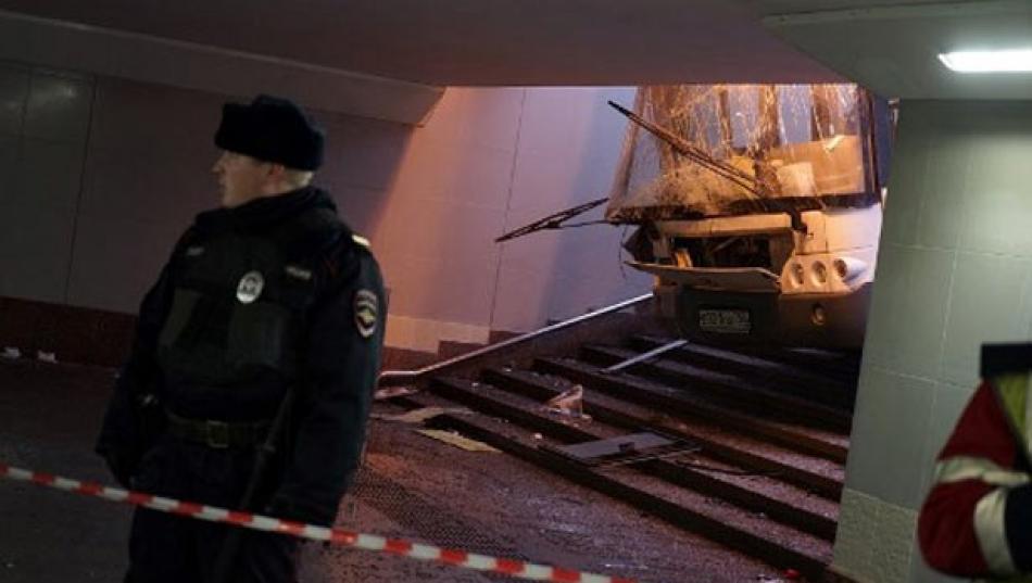 ரஷ்யா தலைநகர் மாஸ்கோவில் உள்ள ஸ்லாவியன்ஸ்கி மெட்ரோ ரயில் நிலையம் சுரங்கத்தில் அமைந்துள்ளது. இதன் அருகே, வந்துக் கொண்டிருந்த பேருந்து ஒன்று கட்டுப்பாட்டை இழந்து திடீரென சுரங்கப்பாதைக்குள் வேகமாக நுழைந்தது.