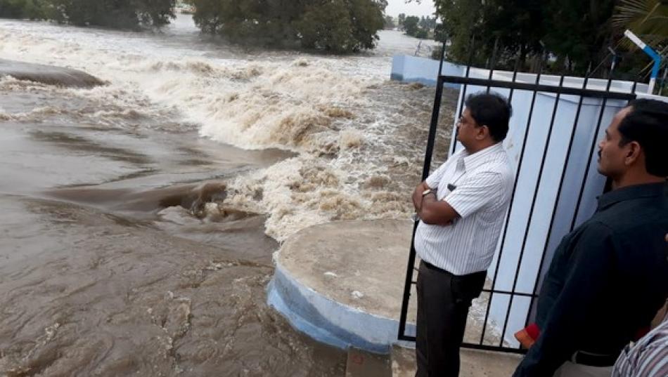 இதனால், அணையில் இருந்து 70 ஆயிர்ம் கன அடி நீர் திறக்கப்பட்டுள்ளது. இதனால், கரையோர மக்கள் பீதியடைந்துள்ளனர்.