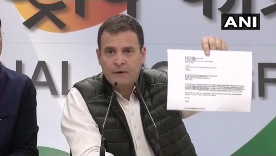 காங்கிரஸ் கட்சியின் தலைமையகத்தில் நடைபெற்ற செய்தியாளர் சந்திப்பில் பேசிய ராகுல் காந்தி, ரஃபேல் கொள்முதல் ஒப்பந்தம் கையெழுத்தாவதற்கு 10 நாட்களுக்கு முன்னர் பிரான்ஸ் பாதுகாப்புத் துறை அமைச்சரை அனில் அம்பானி சந்தித்து பேசியதாக ஏர்பஸ் நிர்வாக இயக்குநர் இ மெயிலில் தெரிவித்துள்ளார்.