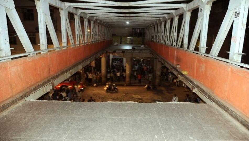 மும்பை சத்ரபதி சிவாஜி ரயில் நிலையம் அருகே உள்ள நடை மேம்பாலத்தில், பயணிகள் நெரிசல் அதிகமாக இருந்த, இரவு 7:30 மணியளவில் இச்சம்பவம் நடந்தது. திடீரென சத்தத்துடன், நடை மேம்பாலத்தின் ஒரு பகுதி இடிந்து விழுந்தது; இதை சற்றும் எதிர்பாராத பயணிகள் அலறியடித்து ஓட்டம் பிடித்தனர்.