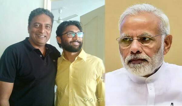 இந்நிலையில், குஜராத் மாநில சுயேட்சை எம்.எல்.ஏ.வும், தலித் தலைவராக அறியப்படுபவருமான ஜிக்னேஷ் மேவானி, நடிகர் பிரகாஷ் ராஜுடன் சந்தித்து ஒரு புகைப்படம் எடுத்து ட்விட்டரில் பதிவிட்டுள்ளார்.