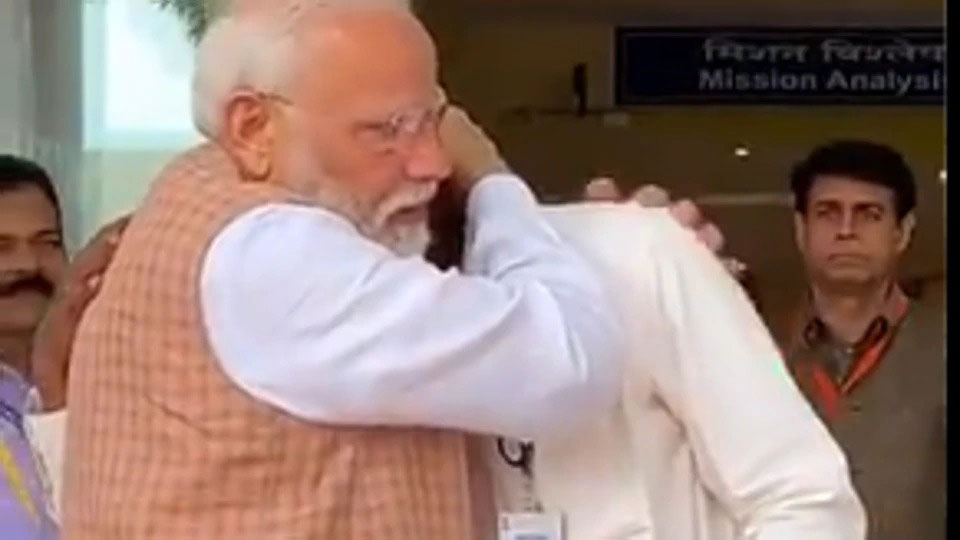 இஸ்ரோ கட்டுப்பாட்டறையில் இருந்து மக்களுக்கு உரையாற்றி விட்டு பிரதமர் மோடி புறப்படும் போது, இஸ்ரோ தலைவர் சிவன் கண்ணீர் விட்டு அழுதார். பிரதமர் அவரை கட்டிப்பிடித்து ஆறுதல் தெரிவித்தார்.