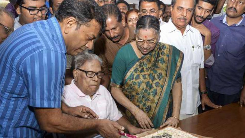 கேரளாவின் பிடல் காஸ்ட்ரோ என்றழைக்கப்படும் மூத்த கம்யூனிஸ்ட் தலைவர் வி.எஸ்.அச்சுதானந்தன் 96வது பிறந்த நாளை நேற்று (அக்.20) கேக் வெட்டி கொண்டாடினார்.