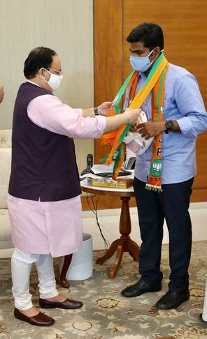 ஐ.பி.எஸ். பதவியை ராஜினாமா செய்த அண்ணாமலை இன்று டெல்லியில் உள்ள பாஜக தலைமை அலுவலகத்திற்கு வந்தார். அங்கு பாஜக பொதுச் செயலாளர் முரளிதர்ராவை சந்தித்து, அந்த கட்சியில் இணைந்தார். அப்போது மாநில பாஜக தலைவர் எல்.முருகன் உடனிருந்தார். தமிழகத்தைச் சேர்ந்த ஐ.பி.எஸ். அதிகாரியான அண்ணாமலை குப்புசாமி, கர்நாடகாவில் பணியாற்றி வந்தார். உடுப்பி, சிக்மகளூர் மாவட்டங்களில் அவர் எஸ்.பி.யாக பணியாற்றினார். அந்த மாவட்டங்களில் இருந்து அவர் பணிமாற்றம் செய்யப்படும் போதெல்லாம் மாவட்ட மக்கள் அவருக்கு ஆதரவாகக் குரல் எழுப்பினர்.