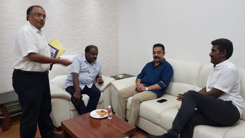 மக்கள் நீதி மய்யத்தின் தலைவர் கமல்ஹாசன் இன்று, கர்நாடக முதலமைச்சர் குமாரசாமியை சந்தித்து பேசினார்.
