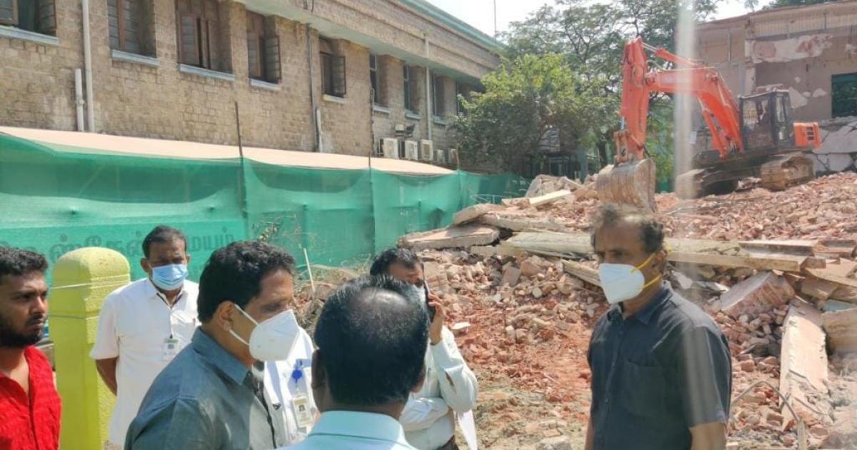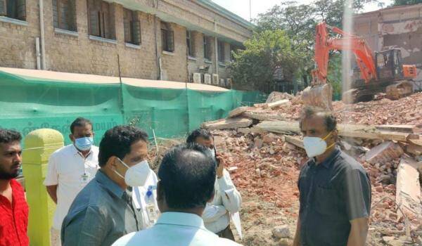 மருத்துவமனை முதல்வர் மற்றும் பொறியாளர்களை அழைத்துக் கட்டிட இடிப்பு பணிகளை உடனே நிறுத்த உத்தரவிட்டார்.உரிய பாதுகாப்பு ஏற்பாடுகளைச் செய்த பின்னரே பணிகளைத் தொடங்க வேண்டும் என்று அவர் உத்தரவிட்டார்.