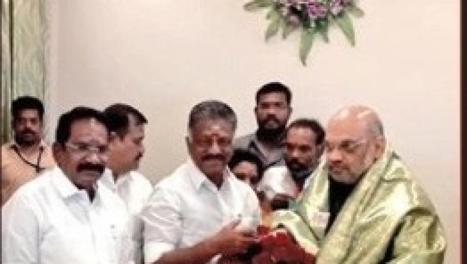 மதுரை வருகை தந்துள்ள பாஜக தேசியத் தலைவர் அமித்ஷாவை அதிமுக ஒருங்கிணைப்பாளரும் துணை முதல்வருமான ஓ. பன்னீர்செல்வம் வரவேற்றார்.