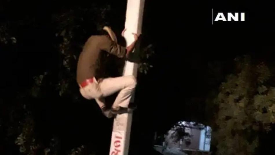 ராஜஸ்தான் மாநிலம் உன்னாவ் நகரில் நேற்றிரவு அரசியல் கட்சிகளின் விளம்பரங்களை போலீசார் அவசர, அவசரமாக அகற்றினர்.அப்போது மின் கம்பத்தில் இருந்த அரசியல் கட்சியின் கொடிகளைப் பார்த்த எஸ்.ஐ, உடன் வந்த போலீஸ்காரரை மின் கம்பத்தில் ஏறி அகற்றுமாறு கூறியுள்ளார். அப்போது கான்ஸ்டபிள் மின் கம்பத்தில் ஏறுவதை அழகாக செல்பி எடுத்து எஸ்.ஐ. மகிழ்ந்துள்ளார்.