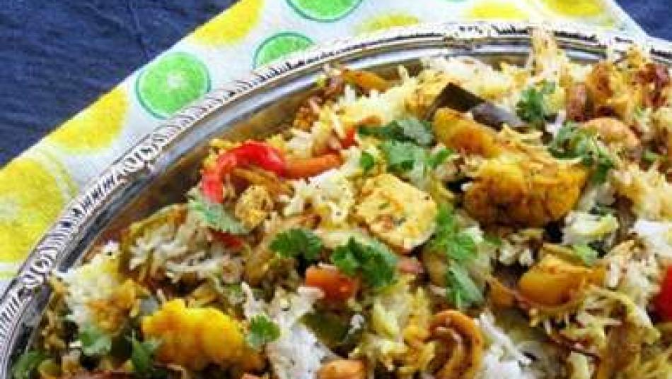 வறுக்கக் கொடுத்துள்ள பொருட் களை வெறும் வாணலியில் வறுத்துப் பொடிக்கவும். அரைக்கக் கொடுத்துள்ள பொருட்களை சிறிதளவு நீர் விட்டு அரைத்துக் கொள்ளவும். பாசுமதி அரிசியை வெறும் வாணலியில் லேசாக வறுத்து, ஒன்றரை கப் நீர் விட்டு, உப்பு சேர்த்து உதிர் உதிராக வேக வைத்துக் கொள்ள வும்.