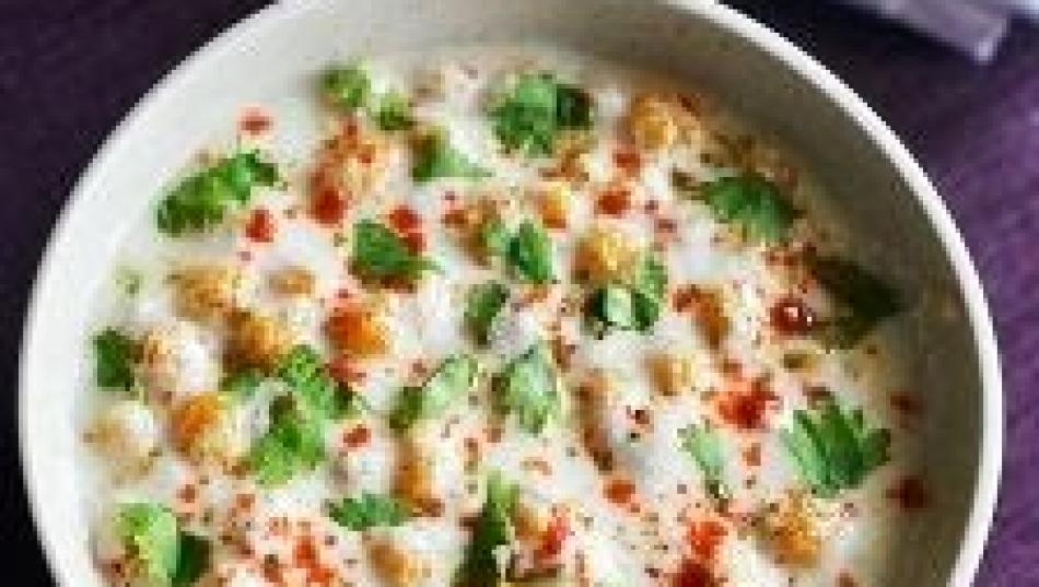 * கடைசியாக காராபூந்தி மற்றும் கொத்தமல்லி தூவி ஸ்பூன் வைத்து பரிமாறவும்.