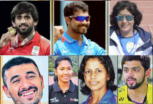 ராஜீவ்காந்தி கேல் ரத்னா விருதுக்கு மல்யுத்த வீரர் பஜ்ரங் பூனியா, பாரா தடகள வீராங்கனை தீபா மாலிக் ஆகியோர் தேர்வாகியுள்ளனர். பாராலிம்பிக் தடகள போட்டியில் பதக்கம் வென்ற முதல் இந்திய வீராங்கனை தீபா மாலிக் என்பது பேட்மிண்டன் பயிற்சியாளர் விமல் குமார், டேபிள் டென்னிஸ் பயிற்சியாளர் சந்தீப் குப்தா, தடகள பயிற்சியாளர் மொஹிந்தர் சிங் தில்லான் ஆகியோர் துரோணாச்சார்யா விருதுக்கு தேர்வு செய்யப்பட்டுள்ளனர்.