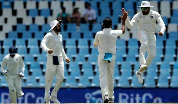 இதன் முதலில் களமிறங்கிய தென் ஆப்பிரிக்கா அணி முதல் இன்னிங்ஸில் 335 ரன்கள் சேர்த்தது. அந்த அணியில் அதிகப்பட்சமாக மார்க்ரம் 94 ரன்களும், ஹசிம் அம்லா 82 ரன்களும், கேப்டன் ஃபாப் டு பிளஸ்ஸி 63 ரன்களும் எடுத்தனர். இந்திய அணி தரப்பில் அஸ்வின் 4 விக்கெட்டுகளையும், இஷாந்த் சர்மா 3 விக்கெட்டுகளையும் கைப்பற்றினர்.