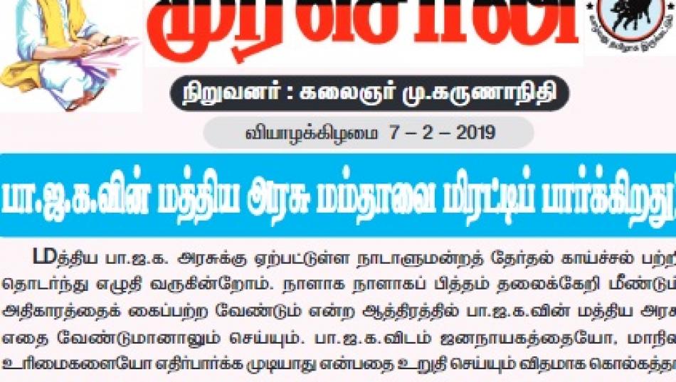 இவ்வாறு முரசொலி தலையங்கத்தில் எழுதப்பட்டுள்ளது.