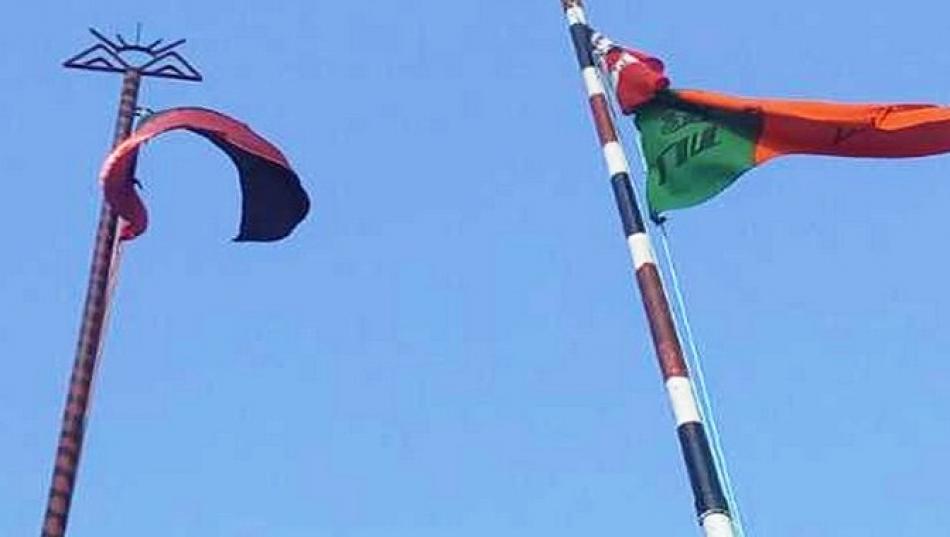 பழனியில், அதிமுக கொடி கம்பத்தில் பாஜக கொடி ஏற்றப்பட்டுள்ளதால் பரபரப்பு ஏற்பட்டுள்ளது.