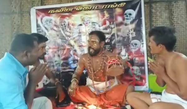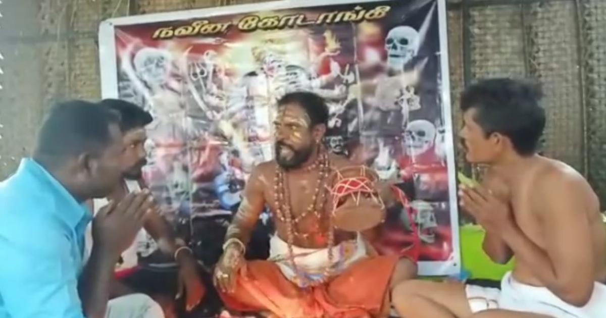 உடுக்கை அடிக்கும் நபரிடம் ஊராட்சி மன்ற தலைவர் ஒருவர்