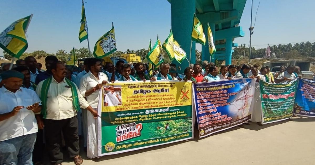 அவர்களை பள்ளிபாளையம் நகராட்சி திருமண மண்டபத்தில் தங்க வைத்துள்ளனர். இந்த போராட்டம் குறித்து நாமக்கல்லில் அமைச்சர் தங்கமணி செய்தியாளர்களிடம் கூறுகையில் உயர்மின் கோபுரம் அமைக்க அரசின் சார்பில் எவ்வளவு நிவாரணம் தொகை வழங்குவதாக அறிவித்த தொகையை அரசு வழங்கிவிட்டது. இரண்டு மூன்று முறை விவசாயிகளிடம் பேச்சுவார்த்தை நடத்தப்பட்டது. எந்த மாவட்டத்தில் அரசால் வழங்கப்பட்ட தொகை வரவில்லையோ அந்த பட்டியலை அந்தந்த மாவட்ட ஆட்சியரிடம் சொல்லி உடனடியாக பெற்றுத் தருகிறேன் என்று கூட்டத்தில் முடிவு எடுக்கப்பட்டது. ஆனால் இதுவரை பட்டியல் வழங்கப்படவில்லை. பட்டியல் வந்ததும் கொடுக்க ஏற்பாடு செய்யப்பட்டுள்ளது. ஆனால் அரசியல் காரணங்களுக்காக சிலர் முற்றுகையிட்டு போராட்டத்தில் ஈடுபட முயன்று உள்ளனர். என தெரிவித்தார்.