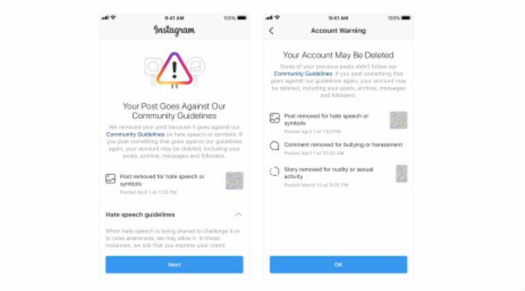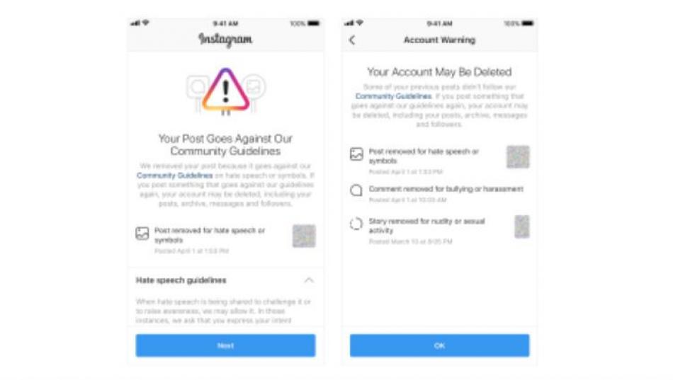 சமுதாய வழிகாட்டு நெறிமுறைகளை மீறும் கணக்குகள் முடக்கப்படும் சாத்தியம் குறித்த எச்சரிக்கையை இன்ஸ்டாகிராம் அனுப்பி வருகிறது. நெறிமுறைகளை மீறும் உள்ளடக்கம் பற்றிய கொள்கைகளை இன்ஸ்டாகிராம் நிறுவனம் மாற்றியமைத்துள்ளது. மீண்டும் மீண்டும் கொள்கைகளை மீறும் கணக்குகளை உடனுக்குடன் கண்டுபிடித்து நீக்குவதற்கு புதிய விதிகள் உதவிகரமாக இருக்கும் என்று அந்நிறுவனம் அறிவித்துள்ளது.