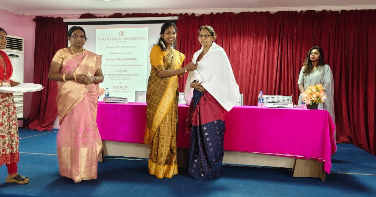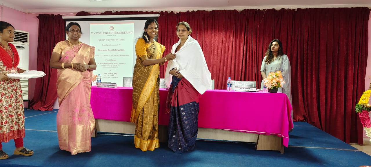 திசையன்விளை வி. வி. பொறியியல் கல்லூரியில் மகளிர் தின விழா கொண்டாடப்பட்டது. விழாவுக்கு கல்லூரி முதல்வர் வனிதா தலைமை வகித்தார்.