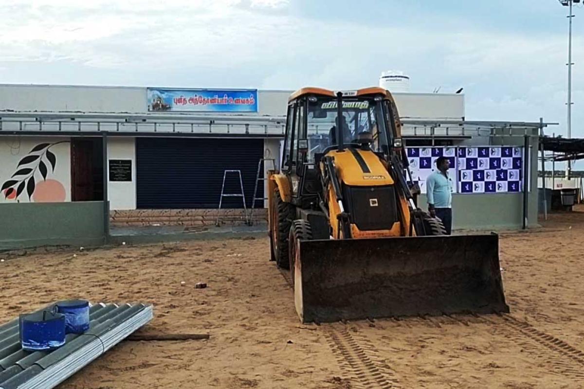 இதனைத் தொடர்ந்து இன்று காவல்துறை அதிகாரிகள் சுமார் 300க்கும் மேற்பட்ட காவல்துறை விரைவுப்படை காவலர்கள் பாதுகாப்புடன் மீன்வளத்துறை அதிகாரிகள், வருவாய் துறை அதிகாரிகள், அரசு விதிக்கு புறம்பாக கட்டப்பட்டுள்ள திருத்தல கேன்டீன் அமைந்துள்ள கட்டடத்தை ஜேசிபி மற்றும் பொக்கலேன் எந்திரங்களுடன் அகற்றி வருகின்றனர். இதனால் அங்கு பரபரப்பு ஏற்பட்டுள்ளது.