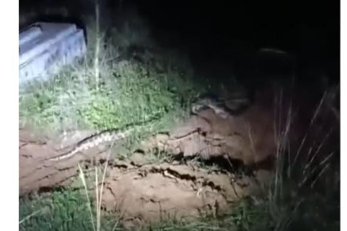 நெல்லை மாவட்டம் முக்கூடல் அருகே ஓடைக்கரை துலுக்கப்பட்டி கிறிஸ்துவ கல்லறை தோட்டப் பகுதியில் முக்கூடல்- ஆலங்குளம் ரோட்டில் மலைப்பாம்பு ஒன்று நேற்றிரவு ஊர்ந்து சென்றுள்ளது. இந்த மலைபாம்பு சுமார் 10 அடிக்கு மேல் நீளமாக இருந்துள்ளது. இதை கண்ட பொதுமக்கள் வீடியோ எடுத்து வெளியிட, அது வைரலானது.