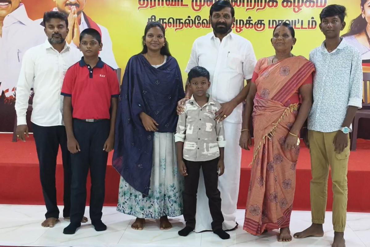 பின்னர், உதயநிதி ஸ்டாலின் உருவபடத்தை திருநெல்வேலி கிழக்கு மாவட்ட திமுக பொறுப்பாளர் கிரகாம்பெல்லிடம் நேரில் காண்பித்து வாழ்த்துபெற்றான் . அவருக்கு கிரகாம்பெல் சால்வை அணிவித்து பாராட்டினார்.