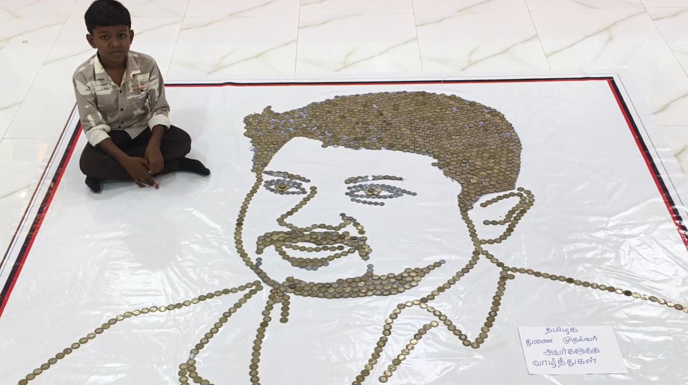 நெல்லை மாவட்டம் வடக்கன்குளம் பகுதியைச் சேர்ந்தவர் அல்போன்ஸ் ஜான். இவரது மனைவி சந்திரிகா. இத்தம்பதியினர் மகன் ஆன்றோ ஜெபஸ் ரிஜோ, வடக்கன்குளம் எஸ்ஏவி மெட்ரிக் மேல்நிலைப் பள்ளியில் இரண்டாம் வகுப்பு பயின்று வருகிறான். தமிழக துணை முதல்வர் உதயநிதி ஸ்டாலின் பிறந்த நாளை ( நவ.27)முன்னிட்டு பத்து ரூபாய் ஐந்து ரூபாய் இரண்டு ரூபாய் நாணயங்கள் மூலம் அவரின் உருவப் படத்தை வரைந்துள்ளான்.