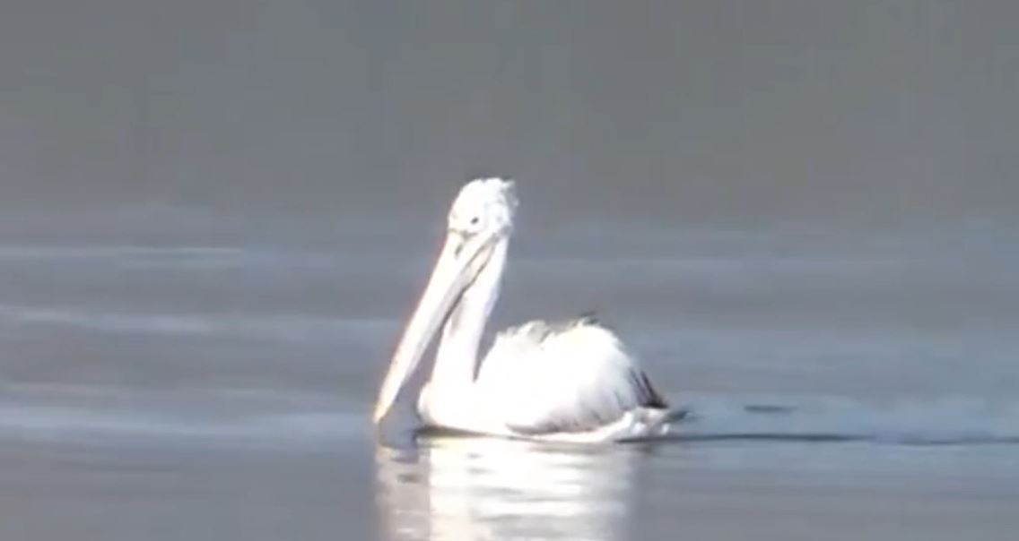 நிரம்பி வழியும் குளத்தில், ஸ்பாட் பில்ட் பெலிகன் (Spot-billed Pelican) எனப்படும் கூழைக்கடா ஒன்று ஒய்யாரமாக வலம் வருகிறது. கூட்டமாக இல்லாமல், தனியாக நீந்தித் திரியும் இந்த கூழைக்கடாவை, "கண்டிகைப்பேரி குளத்தின் நீர்ப்பரப்பை ஆளும் தனிக்காட்டு ராஜா என்று இயற்கை ஆர்வலர்கள் வர்ணிக்கின்றனர்.